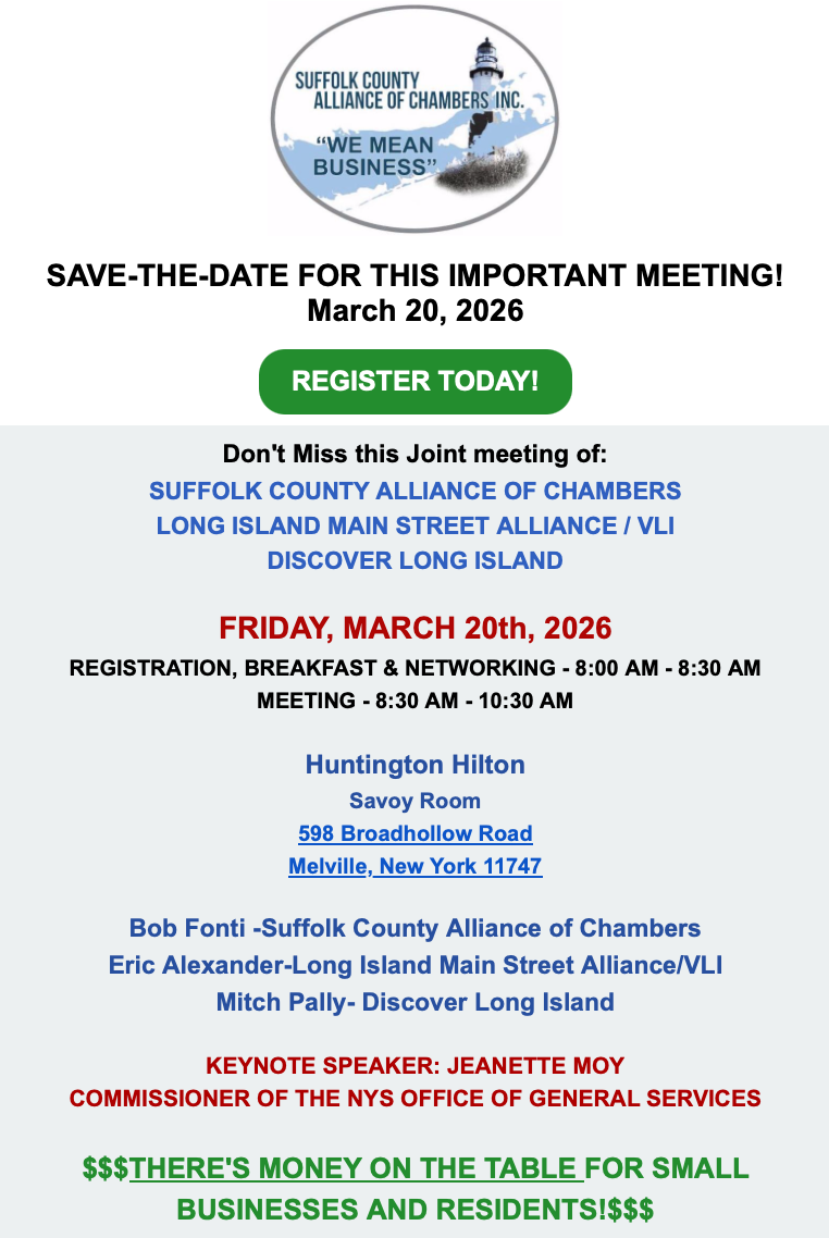 Learn how to become a Corporate Sponsor of the Suffolk County Alliance of Chambers and watch your business prosper! Read More
